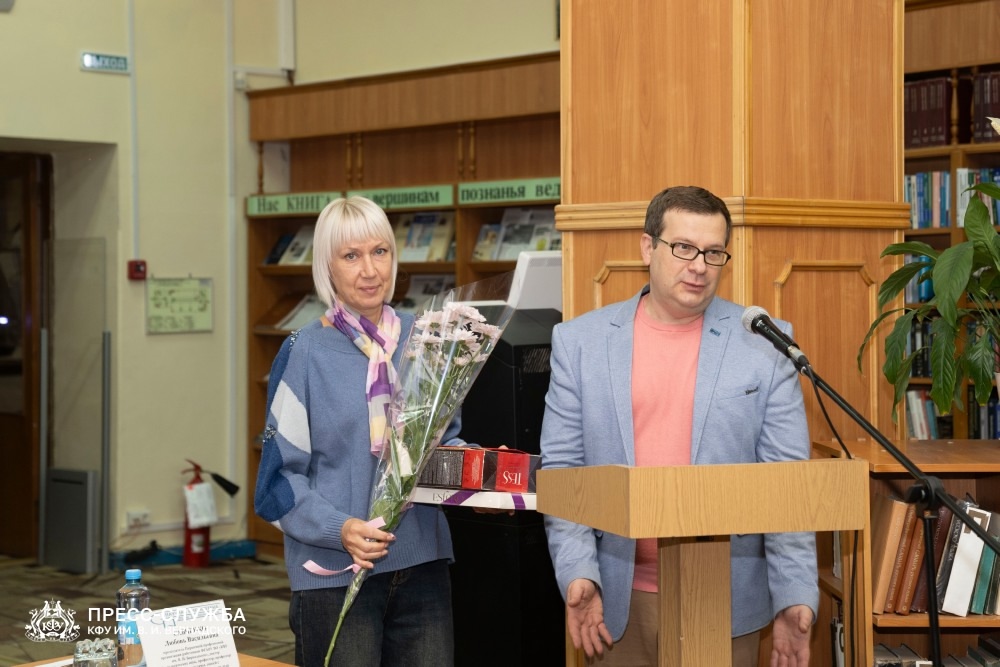 В рамках открытия состоялось торжественное вручение удостоверений ветеранов труда сотрудникам Научной библиотеки КФУ, проработавшим в вузе 25 лет.