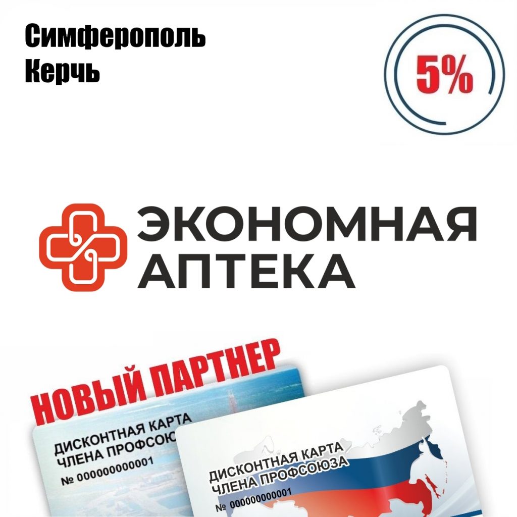 Экономная аптека, сеть аптек, скидка по дисконтной карте члена профсоюза 5%* при покупке на сумму от 1000 рублей!
