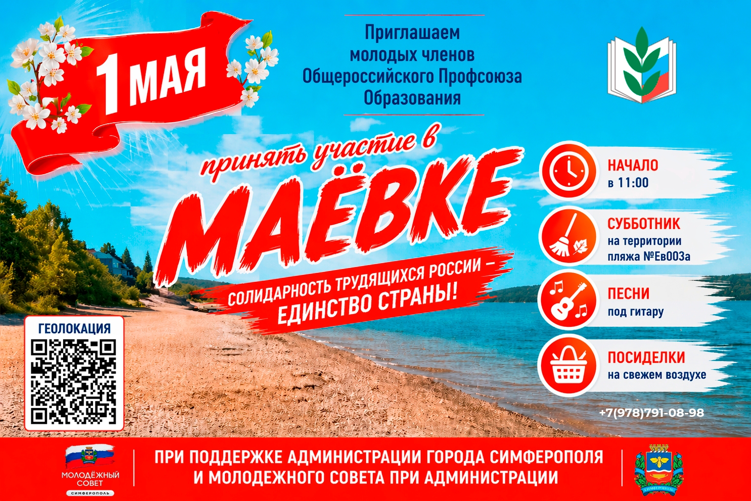Крымская республиканская организация Общероссийского Профсоюза образования приглашает молодых работников первичных организаций Профсоюза принять участие в мероприятии «Маёвка», посвящённом Празднику Весны и Труда.