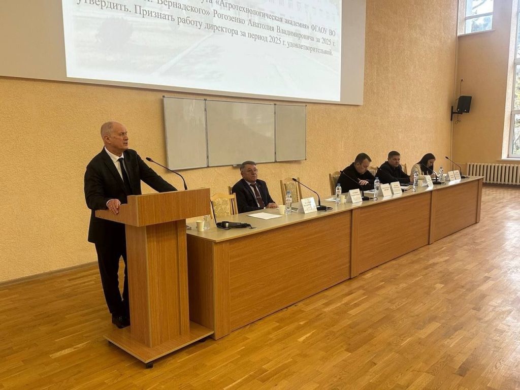 18 декабря состоялось собрание трудового коллектива работников Института «Агротехнологическая академия». Были заслушаны: отчёт за 2025 г. директора Анатолия Рогозенко и отчёт за 2025 г. председателя профсоюзной организации Вячеслава Коровина, которые были единогласно одобрены трудовым коллективом!