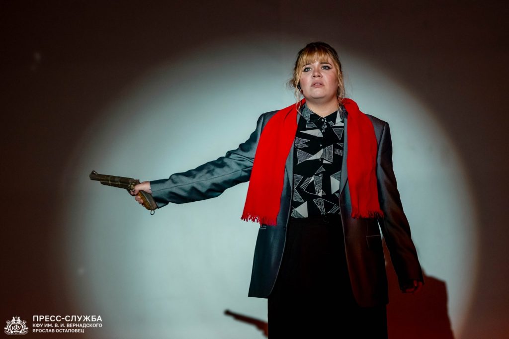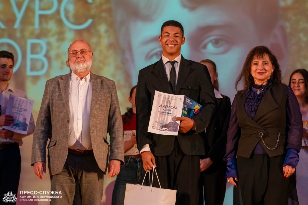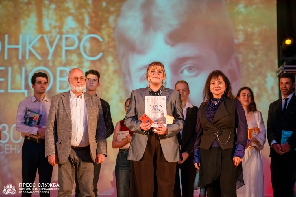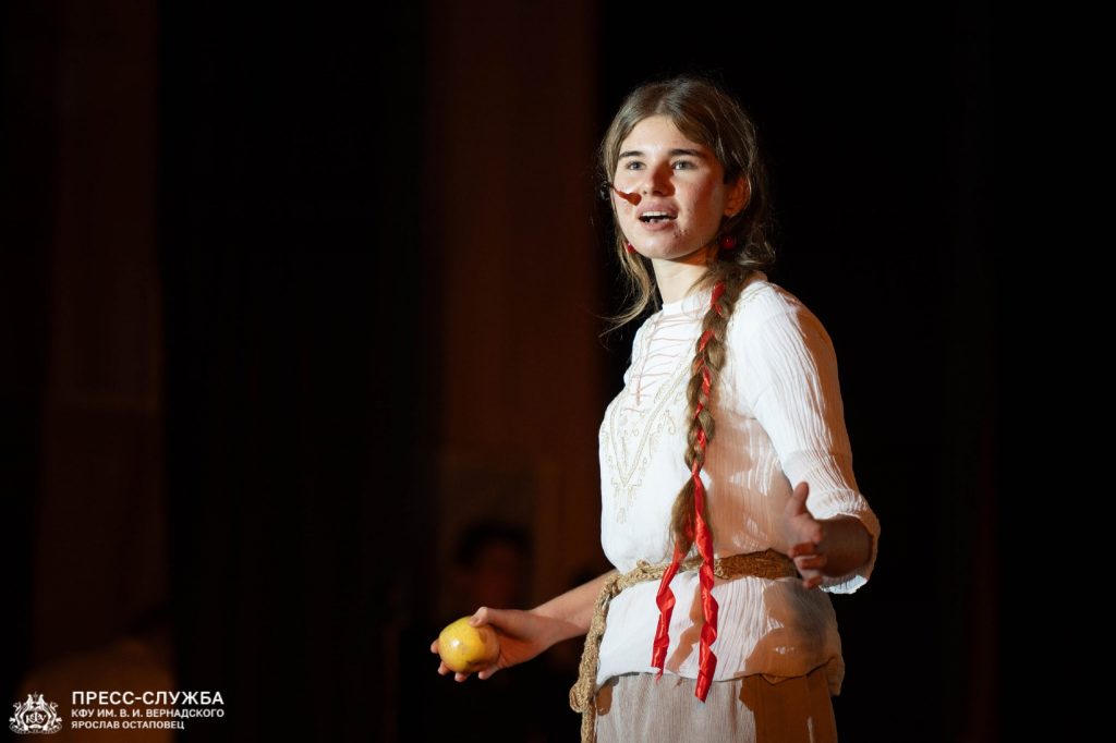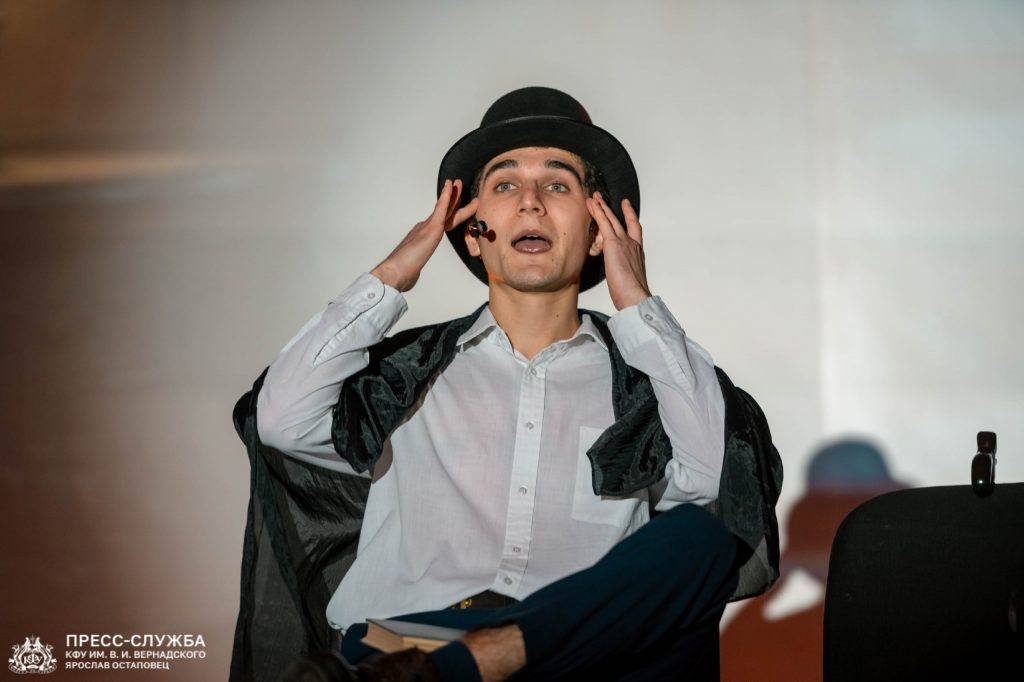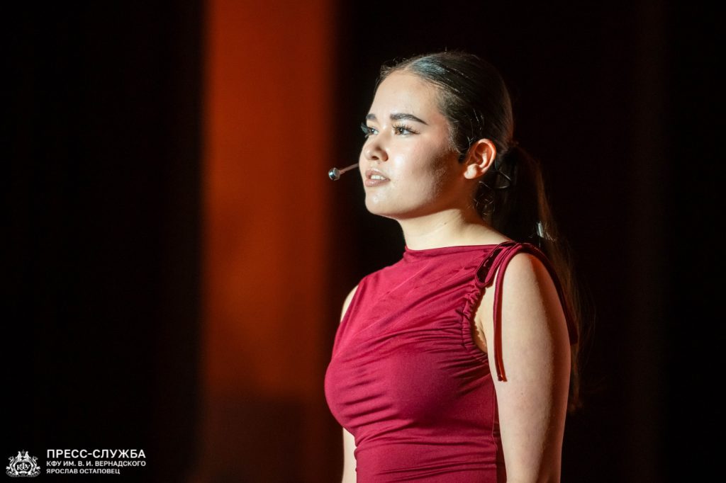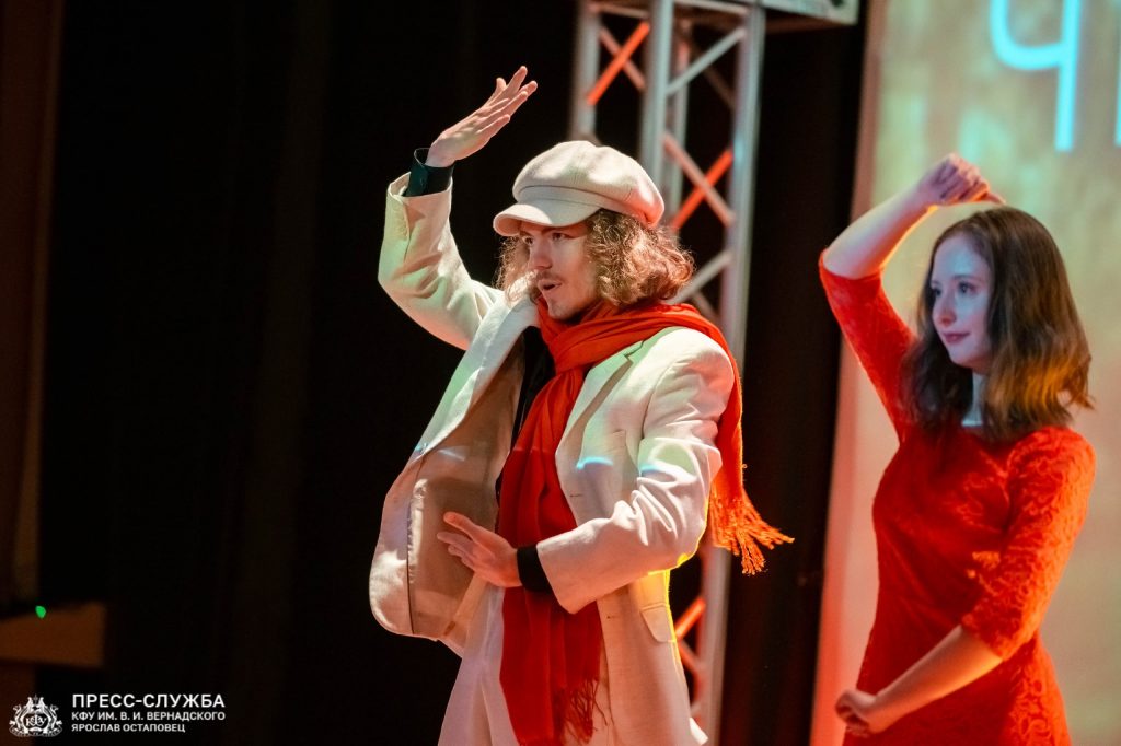 Екатерина Баркарь Их чтение стихов «Письмо к женщине», «Черный человек» и «Мне осталась одна забава…» тронуло жюри и аудиторию артистизмом, владением сценической речью, новыми нюансами и акцентами в интерпретации. Украшением мероприятия стали эффектные творческие номера: яркий танец «Я московский озорной гуляка…» творческого ансамбля «Класс!» (с участием наших первокурсниц Екатерина Федько и Елизавета Федько), романс «Заметался пожар голубой» в исполнении участников вокальной студии Джуниор (женскую партию пела наша студентка Полина Щербина) и театральная зарисовка «Мой ангел» о встрече Есенина и Айседоры Дункан Театральная студия в Симферополе MODUS OPERANDI (сценаристом, режиссером и исполнительницей роли Дункан выступила наша магистрантка Яна Коновалова). Особые аплодисменты заслужили студенты-медики, изучающие русский язык под руководством преподавателей кафедры русского языка как иностранного. Они очень необычно, непривычно, но трогательно и ярко прочитали есенинские стихи. Интерактивной частью вечера стала викторина на знание биографии поэта, где победили и получили памятные призы