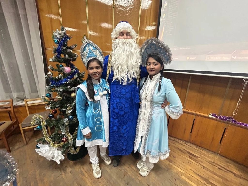 Фото 3. Н. А. Вовк в роли Деда Мороза на мероприятии кафедры РКИ«Новый год по-русски»